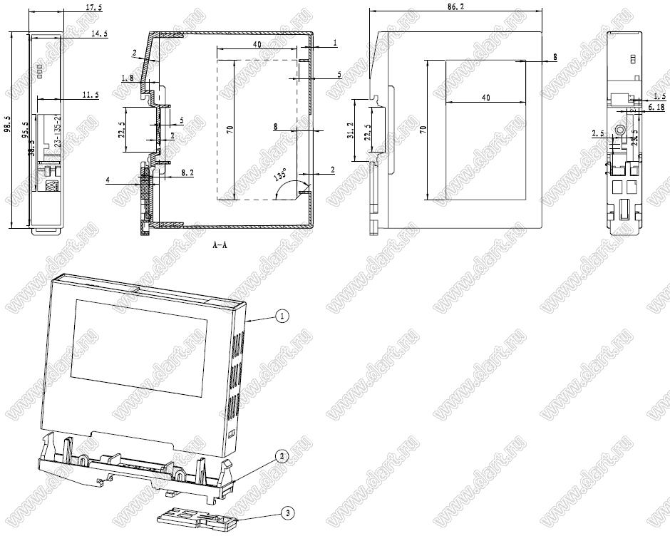 Каталог > Корпусные и установочные изделия > Корпуса для РЭА > Корпуса на DIN-рейку (стандартный электрический рельс) (Case 23-хх) > Case 23-135A