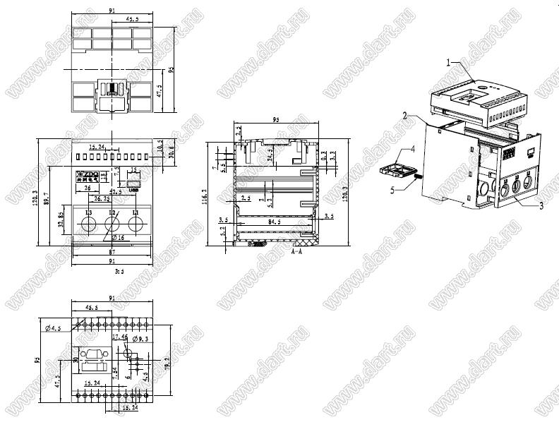 Каталог > Корпусные и установочные изделия > Корпуса для РЭА > Корпуса на DIN-рейку (стандартный электрический рельс) (Case 23-хх) > Case 23-137