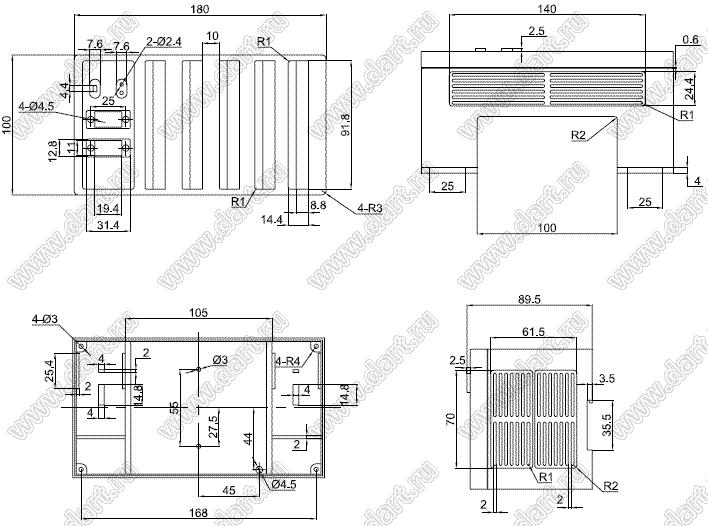 Каталог > Корпусные и установочные изделия > Корпуса для РЭА > Корпуса на DIN-рейку (стандартный электрический рельс) (Case 23-хх) > Case 23-31