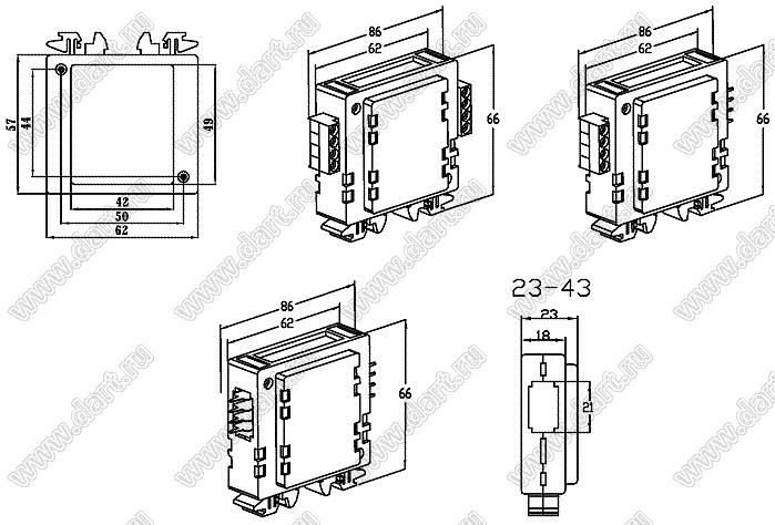 Каталог > Корпусные и установочные изделия > Корпуса для РЭА > Корпуса на DIN-рейку (стандартный электрический рельс) (Case 23-хх) > Case 23-43