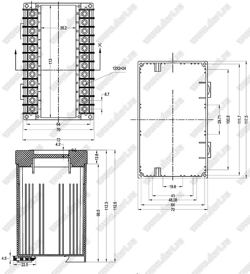 Каталог > Корпусные и установочные изделия > Корпуса для РЭА > Корпуса на DIN-рейку (стандартный электрический рельс) (Case 23-хх) > Case 23-5