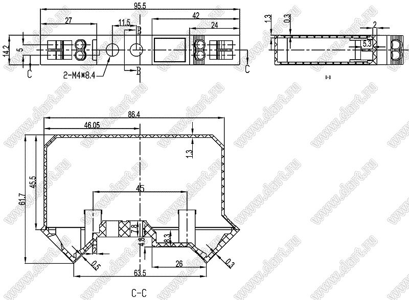 Каталог > Корпусные и установочные изделия > Корпуса для РЭА > Корпуса на DIN-рейку (стандартный электрический рельс) (Case 23-хх) > Case 23-92