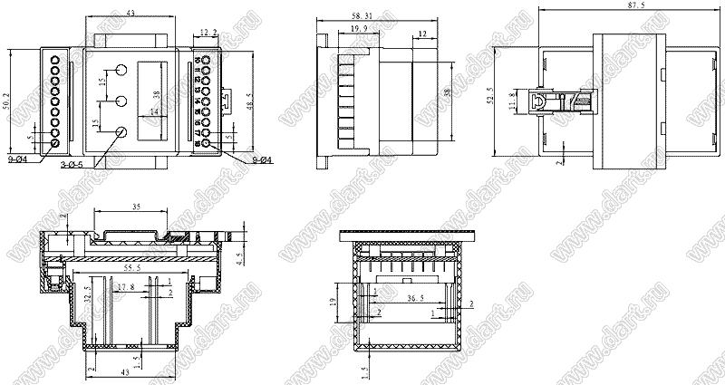 Каталог > Корпусные и установочные изделия > Корпуса для РЭА > Корпуса на DIN-рейку (стандартный электрический рельс) (Case 23-хх) > Case 23-99
