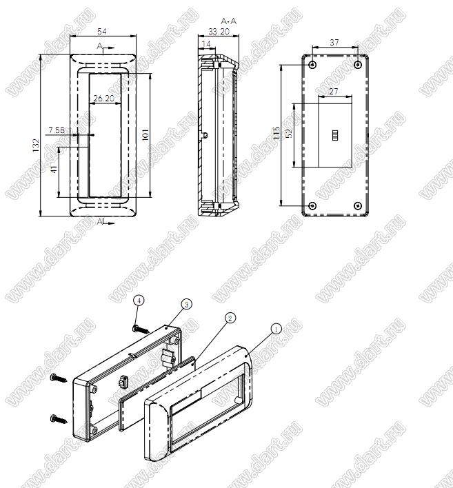 Корпус дисплея 132x54x33 мм; пластик ABS