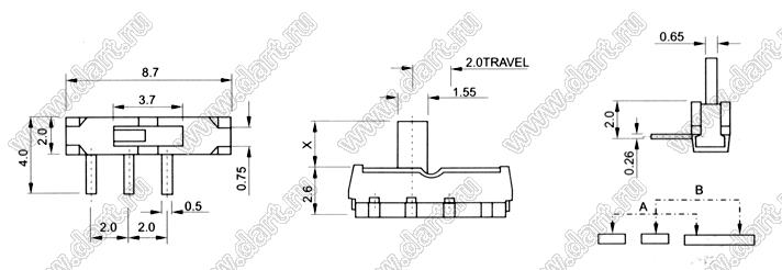 Каталог > Электронные компоненты, радиодетали > Переключатели, кнопки > Переключатели движковые (SLIDE) > Миниатюрные > MSK-12D18