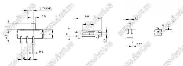 Каталог > Электронные компоненты, радиодетали > Переключатели, кнопки > Переключатели движковые (SLIDE) > Миниатюрные > MSK-12D18A (IS-1270)
