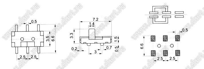Каталог > Электронные компоненты, радиодетали > Переключатели, кнопки > Переключатели движковые (SLIDE) > Миниатюрные > MSS-22C02
