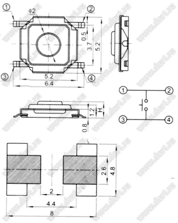 Каталог > Электронные компоненты, радиодетали > Переключатели, кнопки > Переключатели тактовые (TACT, тактовые кнопки) > Тактовые кнопки SMD (для поверхностного монтажа) > 5,2x5,2 мм > TVCM16 > TVCM16 (IT-1187N-160...180G)