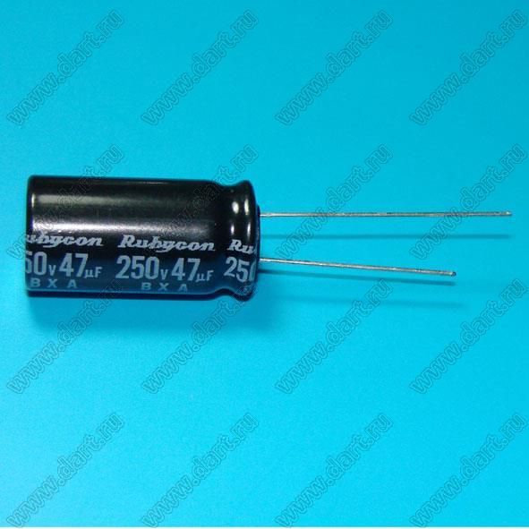 Конденсатор алюминиевый электролитический радиальный; 47мкФ; 250В; 12,5x25мм; P=5мм; Tраб.=-25...+105°C
