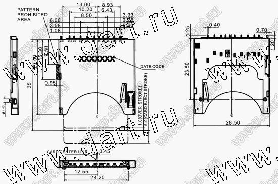 Каталог > Электронные компоненты, радиодетали > Разъёмы (соединители, переходники) > Держатели SIM карт и карт памяти > Держатели SD карт > SDC009-A0-2274