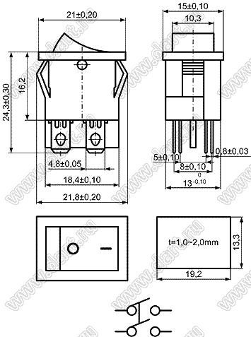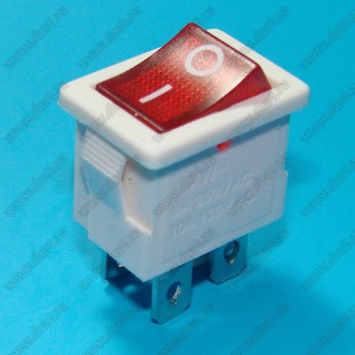 Переключатель клавишный ON-OFF; 21,0х15,0мм; 12A 250V AC; толкатель красный/корпус белый; с подсветкой; маркировка "O I"; терминалы 4,8x0,8мм