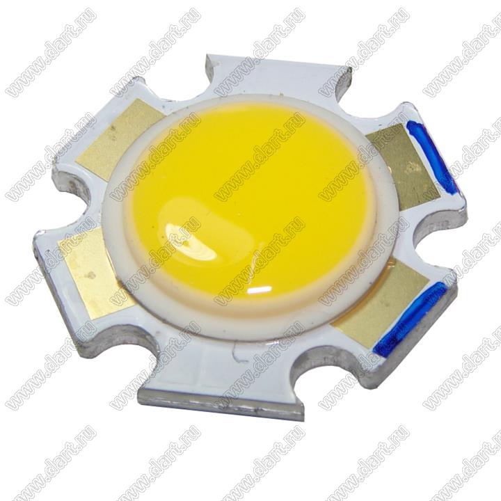 Светодиод мощный 10W на алюминиевой плате "Звездочка"; 10Вт; 300лм; I=350мА; U=5,6-7,6В; белый теплый; 2700-3000К