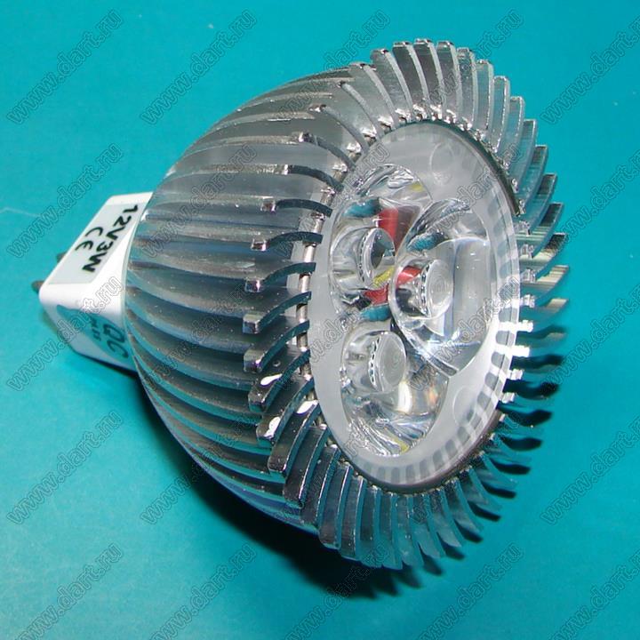 Лампа светодиодная 3Вт; MR16 (GU5,3); 3LEDs; Uп=DC12V; P=3Вт; белый теплый