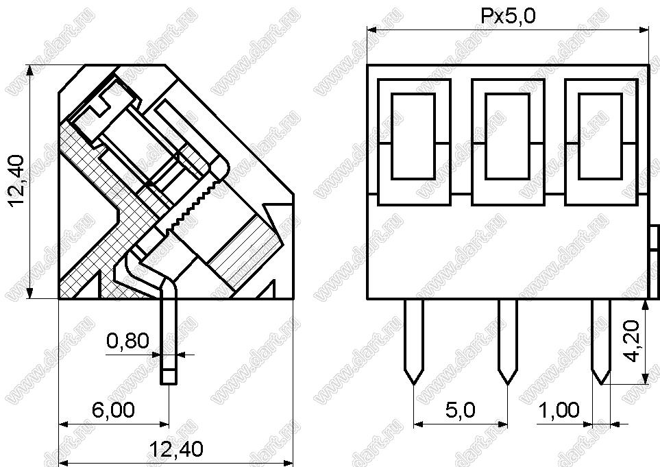 Каталог > Электронные компоненты, радиодетали > Клеммники (колодки клеммные) > Клеммники винтовые для монтажа в отверстия печатных плат > Винтовые клеммники (шаг 5,0 мм) > KF330-5.0 серия > KF330-5.0-03P-12