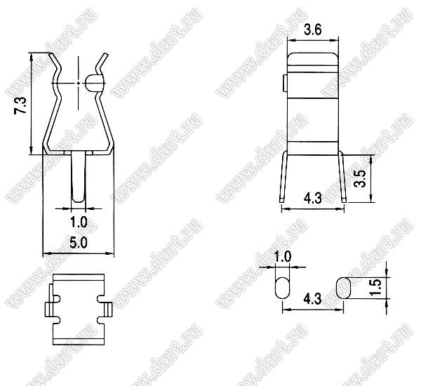 Каталог > Фурнитура для электронных устройств > Держатели предохранителей > Держатели предохранителей (плавких вставок) на плату > Держатели на плату для предохранителей (плавких вставок) 3,6x10 мм > CQ-301B (A-03A1)