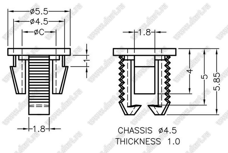 Каталог > Фурнитура для электронных устройств > Держатели и изоляторы компонентов > Держатели светодиодов > Держатели светодиодов на панель > LED3 серия > LED3-20