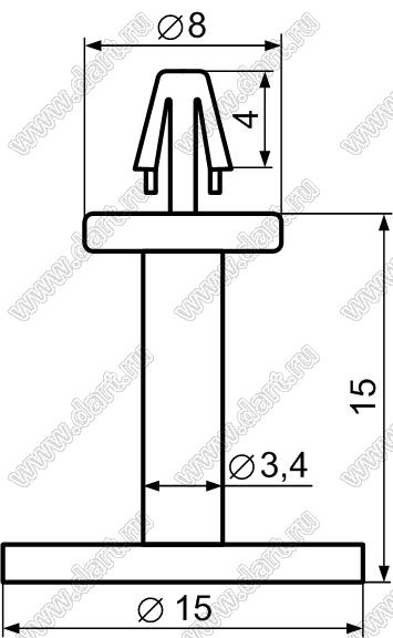 Каталог > Фурнитура для электронных устройств > Фиксаторы плат, стойки межплатные > Фиксаторы под круглое отверстие > Фиксаторы с защелкой в плату > DCB серия > DCB-15L