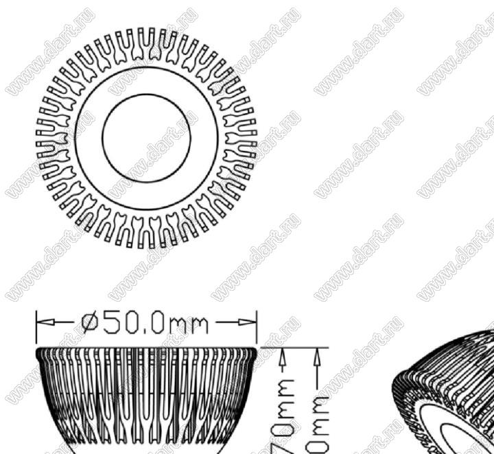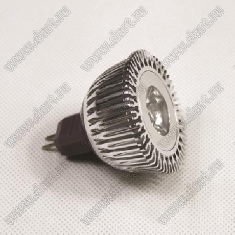 лампа светодиодная; MR16 (GU5,3); Uп=12...24В; P=3Вт; 2700...3000К; теплый белый; Q=20...45°; Φν=25лм; D=50мм; L=51,7мм; 1 Вт эмиттер