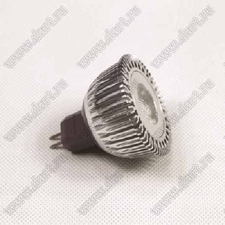 лампа светодиодная; MR16 (GU5,3); Uп=12...24В; P=3Вт; 2700...3000К; теплый белый; Q=20...45°; Φν=130лм; D=50мм; L=51,7мм; 1x3 Вт эмиттер