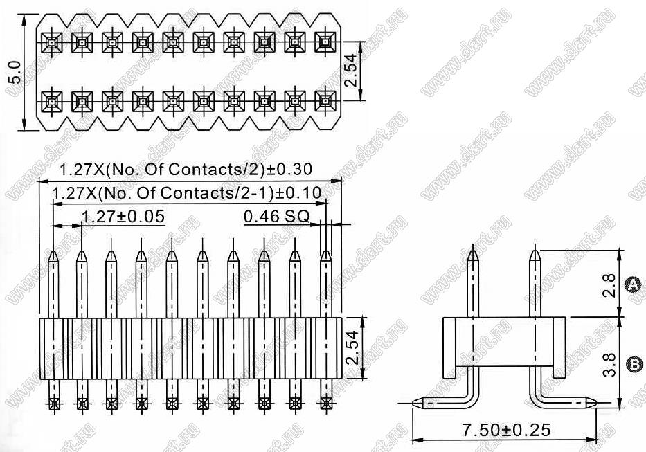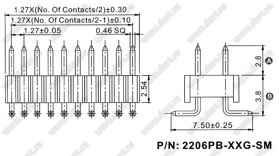 Каталог > Электронные компоненты, радиодетали > Разъёмы (соединители, переходники) > Разъемы плата-плата (межплатные) > шаг 1,27x2,54 мм (разъемы межплатные штыревые и гнезда для них) > двухрядные > 2206PB-XXG-SM-XXXX серия > 2206PB-068G-SM