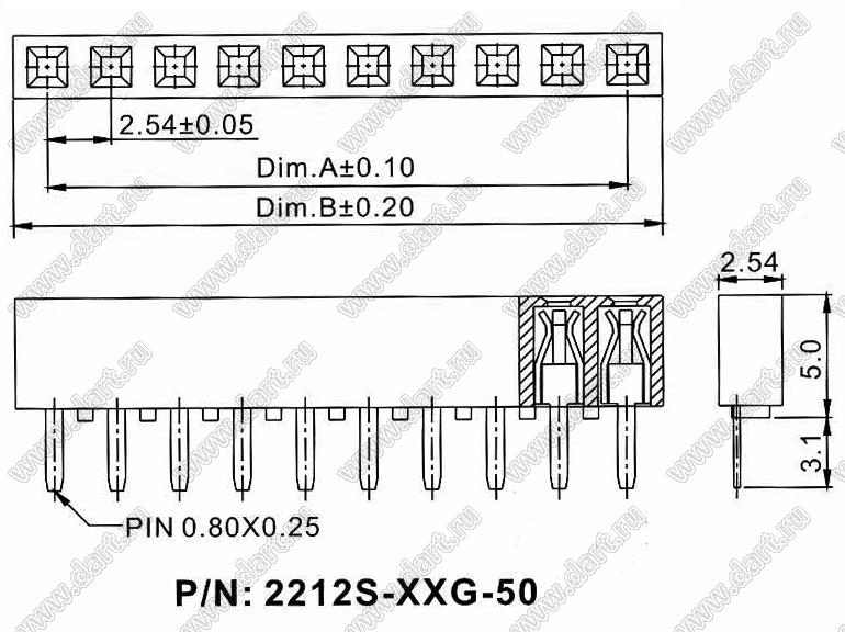 Каталог > Электронные компоненты, радиодетали > Разъёмы (соединители, переходники) > Разъемы плата-плата (межплатные) > шаг 2,54 мм (разъемы межплатные штыревые и гнезда для них) > однорядные > 2212S-XXG-50 серия > 2212S-04G-50