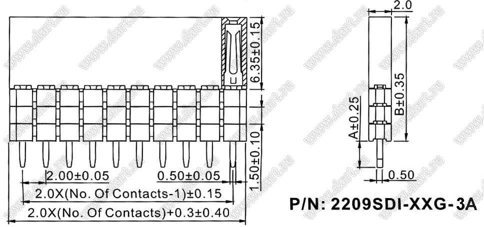 Каталог > Электронные компоненты, радиодетали > Разъёмы (соединители, переходники) > Разъемы плата-плата (межплатные) > шаг 2,00x2,00 мм (разъемы межплатные штыревые и гнезда для них) > однорядные > 2209SDI-XXG-3A серия > 2209SDI-13G-3A