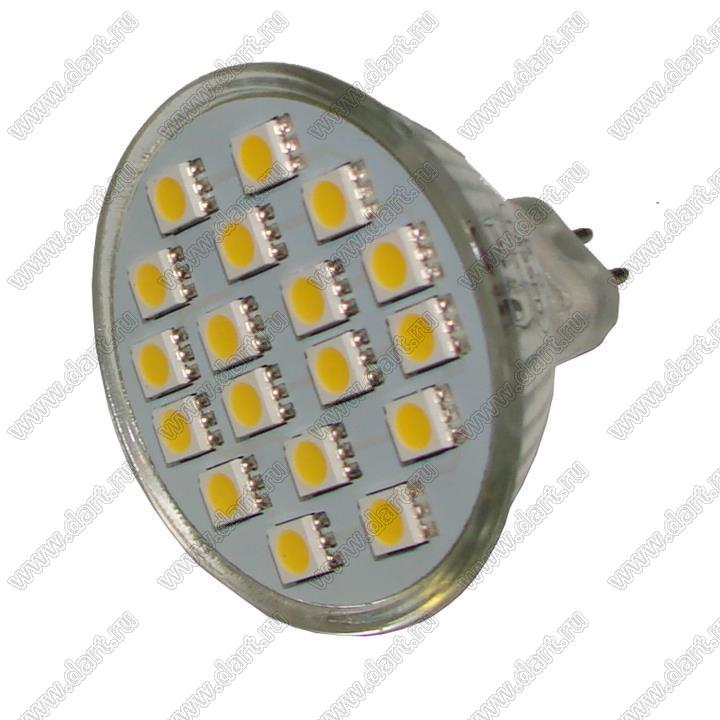 Лампа светодиодная; MR16 (GU5,3); 3LEDs; Uп=DC12V; P=1,8Вт; белый теплый