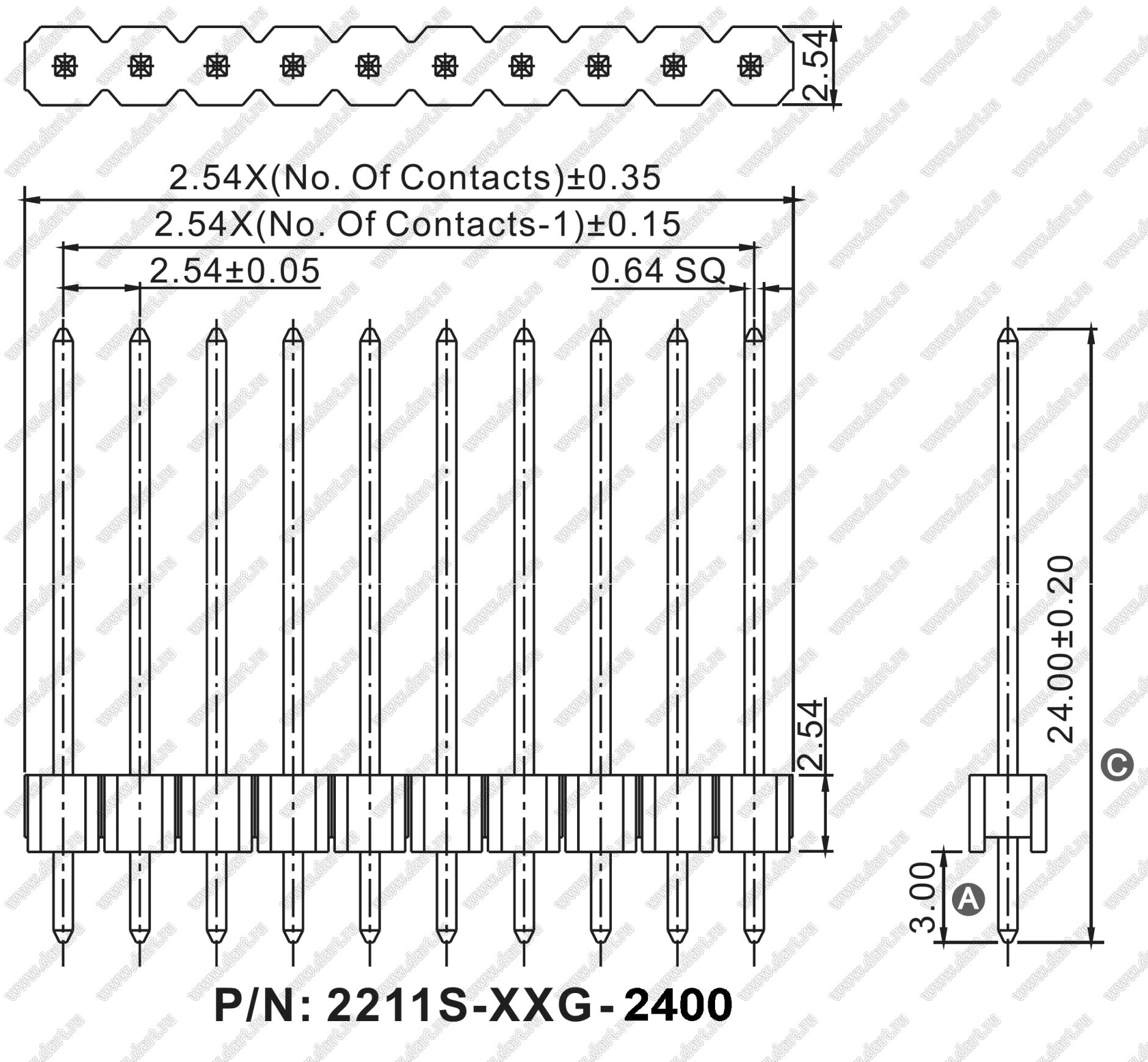 Каталог > Электронные компоненты, радиодетали > Разъёмы (соединители, переходники) > Разъемы плата-плата (межплатные) > шаг 2,54 мм (разъемы межплатные штыревые и гнезда для них) > однорядные > 2211S-XXG-XXXX (PLS-XX) серия > 2211S-40G-2400