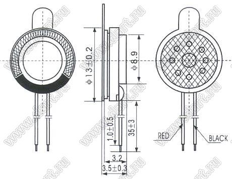 Динамик миниатюрный; D13H3,5мм; 0,5Вт; 8(Ом)