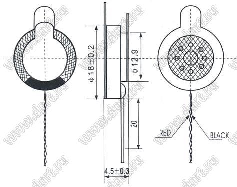 Динамик миниатюрный; D18H4,5мм; 0,8Вт; 8(Ом)