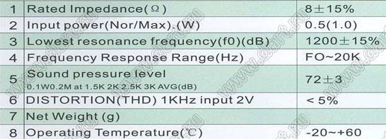 Сопротивление R: 8±15% Ом (на частоте 1 кГц)