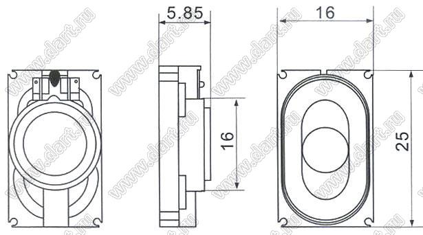 Динамик миниатюрный; 25x16x5,85мм; 0,5Вт; 8(Ом)