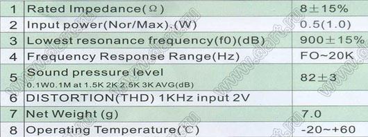 Сопротивление: 8±15% Ом (на частоте 1 кГц)