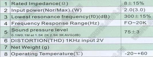 Сопротивление: 4±15% Ом (на частоте 1 кГц)