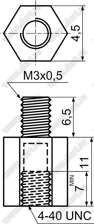 Каталог > Фурнитура для электронных устройств > Крепеж металлический (метизы) и пластиковый > Стойки резьбовые > Стойки резьбовые пластиковые > Шестигранные > Прочие шестигранные > TPS44-11