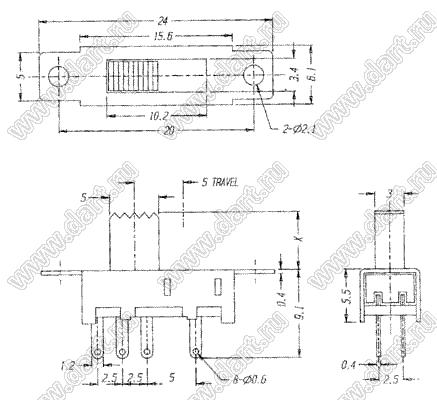 Каталог > Электронные компоненты, радиодетали > Переключатели, кнопки > Переключатели движковые (SLIDE) > Переключатели движковые (SLIDE) прямые > SS-22J08-G3