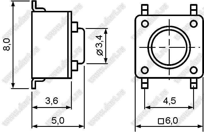 Каталог > Электронные компоненты, радиодетали > Переключатели, кнопки > Переключатели тактовые (TACT, тактовые кнопки) > Тактовые кнопки SMD (для поверхностного монтажа) > 6,0x6,0 мм > TD-06 серия > TD-06XA-X-T/R