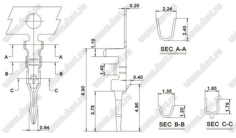 Терминал (контакт) розетки на провод; шаг 2,00мм; латунь луженая