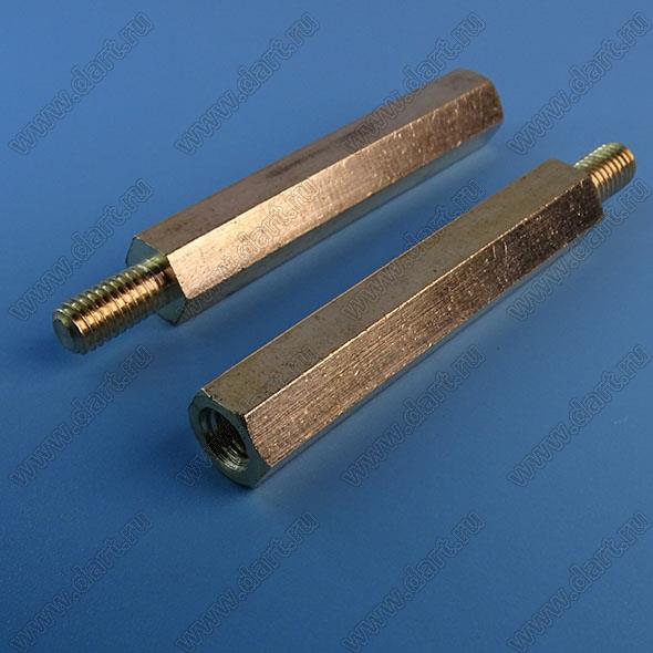 Стойка шестигранная с внутренней и наружной резьбами; M5x0,8; SW=8,0мм; L=45,0мм; латунь