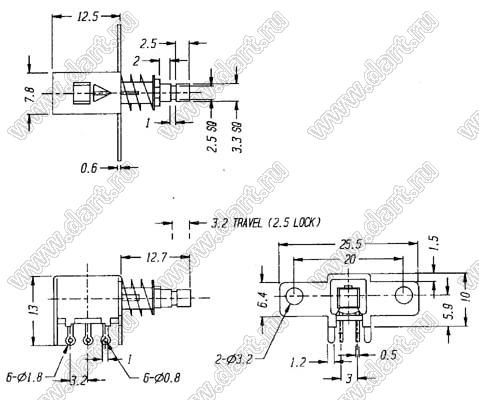 Каталог > Электронные компоненты, радиодетали > Переключатели, кнопки > Переключатели кнопочные (PUSH, кнопки) > PS серия > PS-22 (2P2T) > PS-22F46L