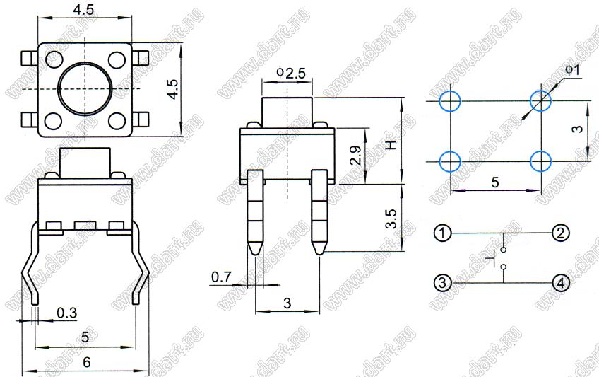 Каталог > Электронные компоненты, радиодетали > Переключатели, кнопки > Переключатели тактовые (TACT, тактовые кнопки) > Тактовые кнопки прямые для монтажа в отверстия платы > 4,5x4,5 мм > TVCP02 серия > TVCP02-4.8