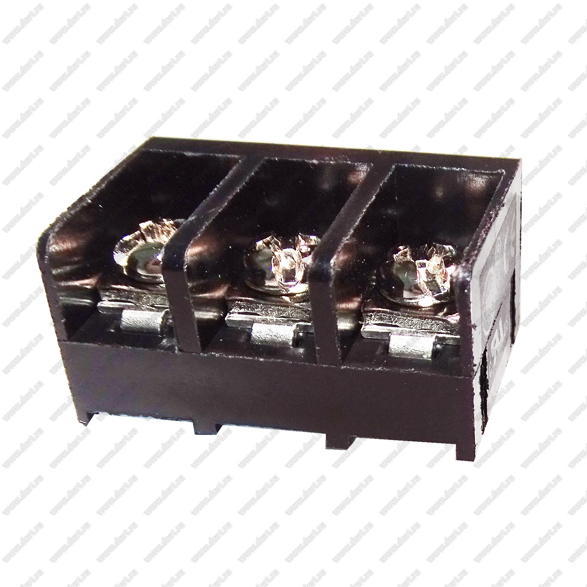 Клеммник барьерный, выводы прямые в плату; шаг=9,5мм; I max=30/32А (стандарт UL/ICT); U=300/750В (стандарт UL/ICT); 3-конт.