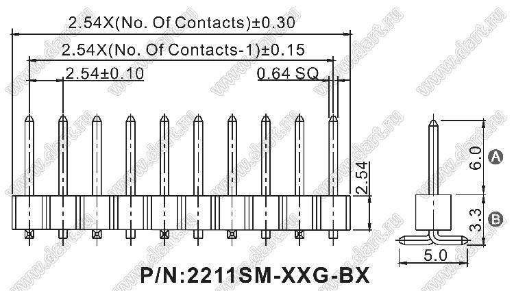 Каталог > Электронные компоненты, радиодетали > Разъёмы (соединители, переходники) > Разъемы плата-плата (межплатные) > шаг 2,54 мм (разъемы межплатные штыревые и гнезда для них) > однорядные > 2211SM-XXG-B2 серия > 2211SM-12G-B2