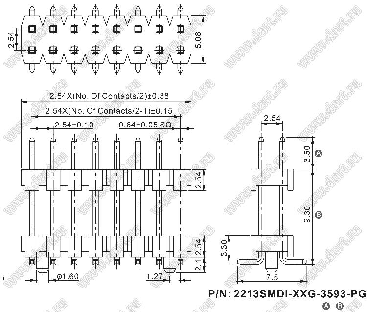 Каталог > Электронные компоненты, радиодетали > Разъёмы (соединители, переходники) > Разъемы плата-плата (межплатные) > шаг 2,54 мм (разъемы межплатные штыревые и гнезда для них) > двухрядные > 2213SMDI-XXG-PG серия > 2213SMDI-14G-PG