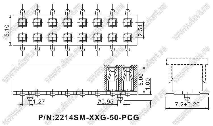 Каталог > Электронные компоненты, радиодетали > Разъёмы (соединители, переходники) > Разъемы плата-плата (межплатные) > шаг 2,54 мм (разъемы межплатные штыревые и гнезда для них) > двухрядные > 2214SM-XXG-50-PCG серия > 2214SM-50G-50-PCG