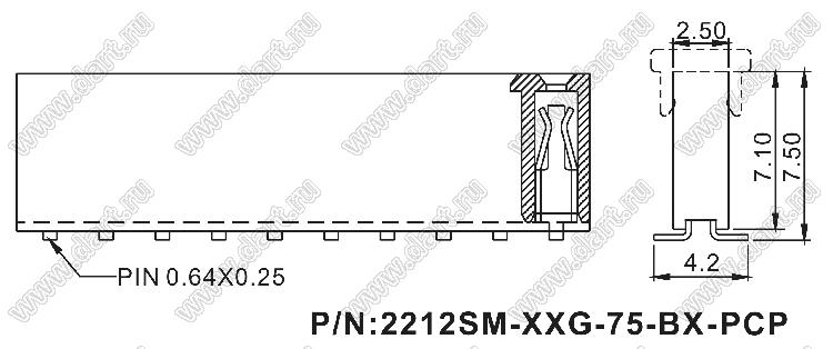 Каталог > Электронные компоненты, радиодетали > Разъёмы (соединители, переходники) > Разъемы плата-плата (межплатные) > шаг 2,54 мм (разъемы межплатные штыревые и гнезда для них) > однорядные > 2212SM-XXG-75-B2-PCP серия > 2212SM-17G-75-B2-PCP