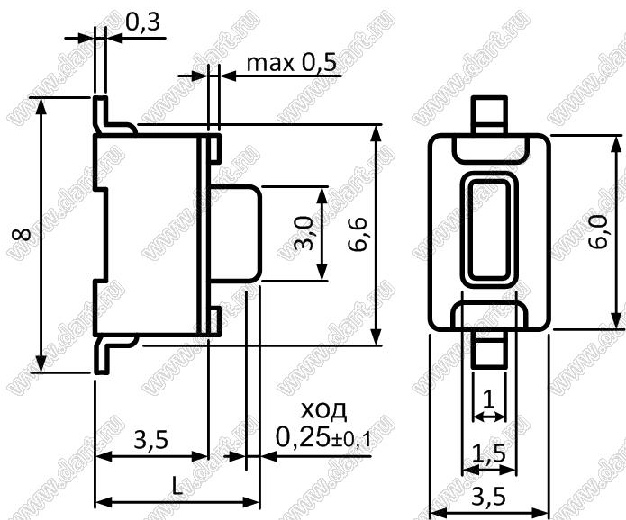 Каталог > Электронные компоненты, радиодетали > Переключатели, кнопки > Переключатели тактовые (TACT, тактовые кнопки) > Тактовые кнопки SMD (для поверхностного монтажа) > 3,5x6,0 мм > TD-02 серия > TD-02XA-Y (T/R) (DTSM-32N, IT-1101EA)