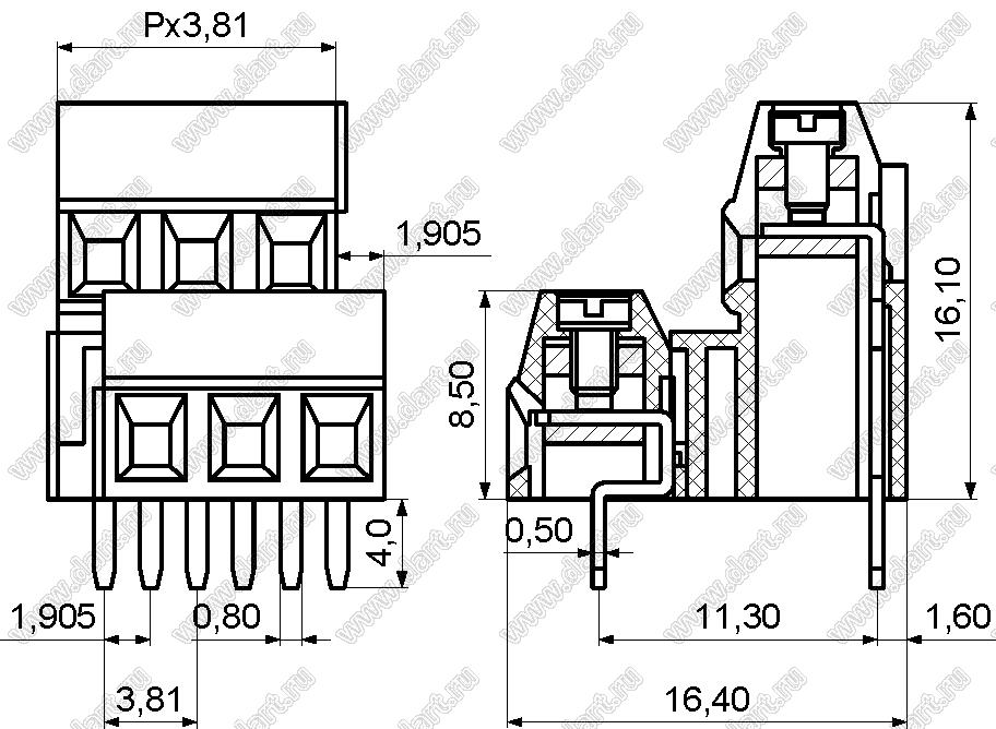 Каталог > Электронные компоненты, радиодетали > Клеммники (колодки клеммные) > Клеммники винтовые для монтажа в отверстия печатных плат > Винтовые клеммники (шаг 3,81 мм) > KF128A-3.81 серия > KF128A-3.81-02P-14