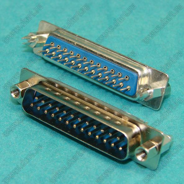 Разъем D-SUB (вилка) вертикальный 25 конт. с гайками и защелками в плату