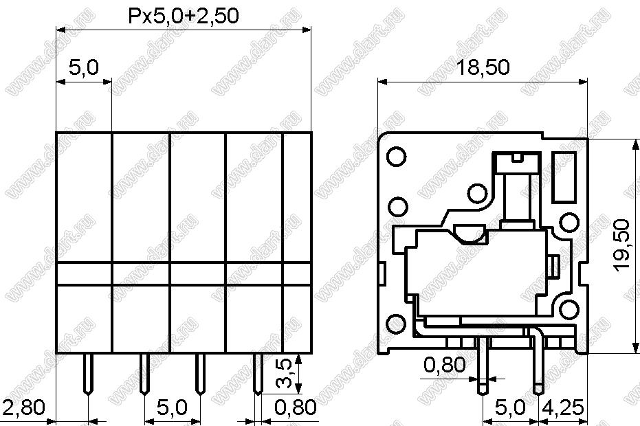 Каталог > Электронные компоненты, радиодетали > Клеммники (колодки клеммные) > Клеммники винтовые для монтажа в отверстия печатных плат > Винтовые клеммники (шаг 5,0 мм) > KF105V-5.0 (DG105V-5.0) серия > KF105V-5.0-01P-14